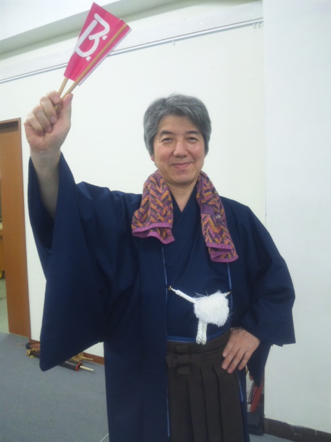 こちらは、制裁編の衣装付き通し稽古の際の、制裁編お奉行様役・長内努氏でございます。ダンディでございましょう?