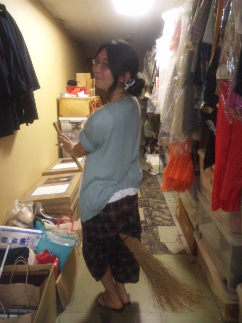 稽古場横にある衣装・小道具庫で、小道具スタッフちゃっきー(小川千晶)を発見。
